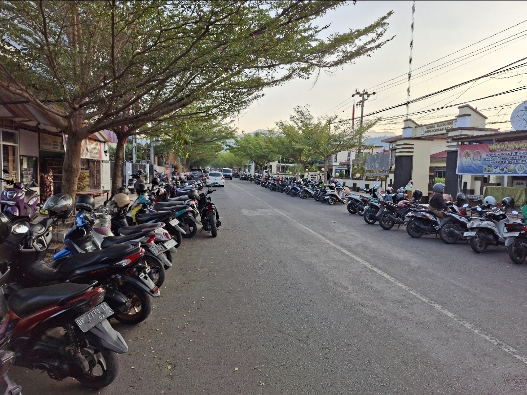 Pantauan di lokasi, area parkir Polres yang biasanya menampung puluhan kendaraan tak lagi mencukupi. Banyak motor dan mobil terpaksa diparkir di bahu jalan hingga memicu antrean panjang serta kemacetan ringan di sekitar kawasan tersebut.